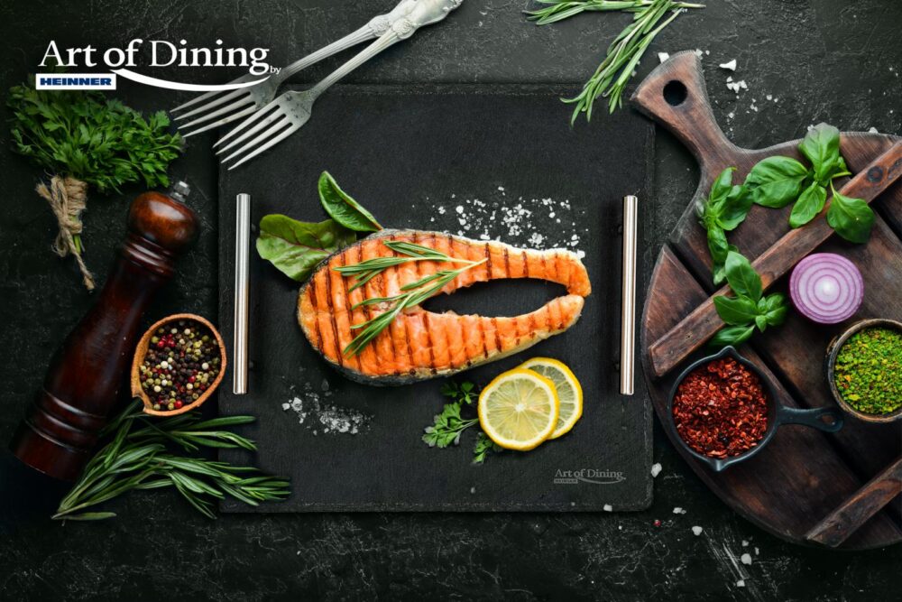 Platou ardezie patrat Cooking by Heinner, cu doua manere din inox, 30 x 30cm