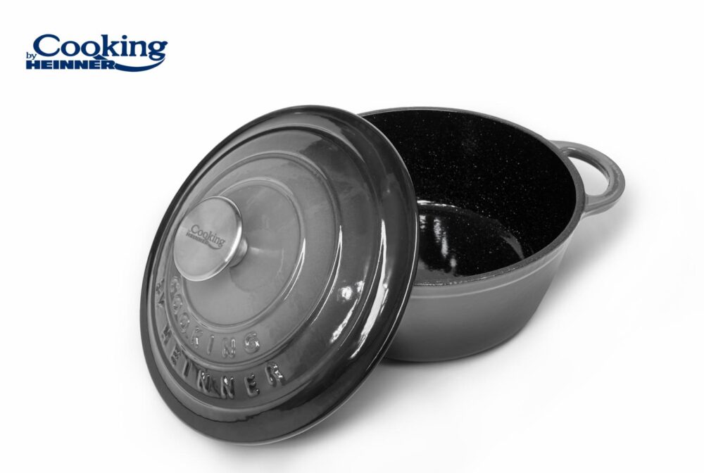 Descriere produs SEMIOALA FONTA EMAILATA + CAPAC 26 x 12 CM, 4.8 L MARBLE GREY, COOKING BY HEINNER