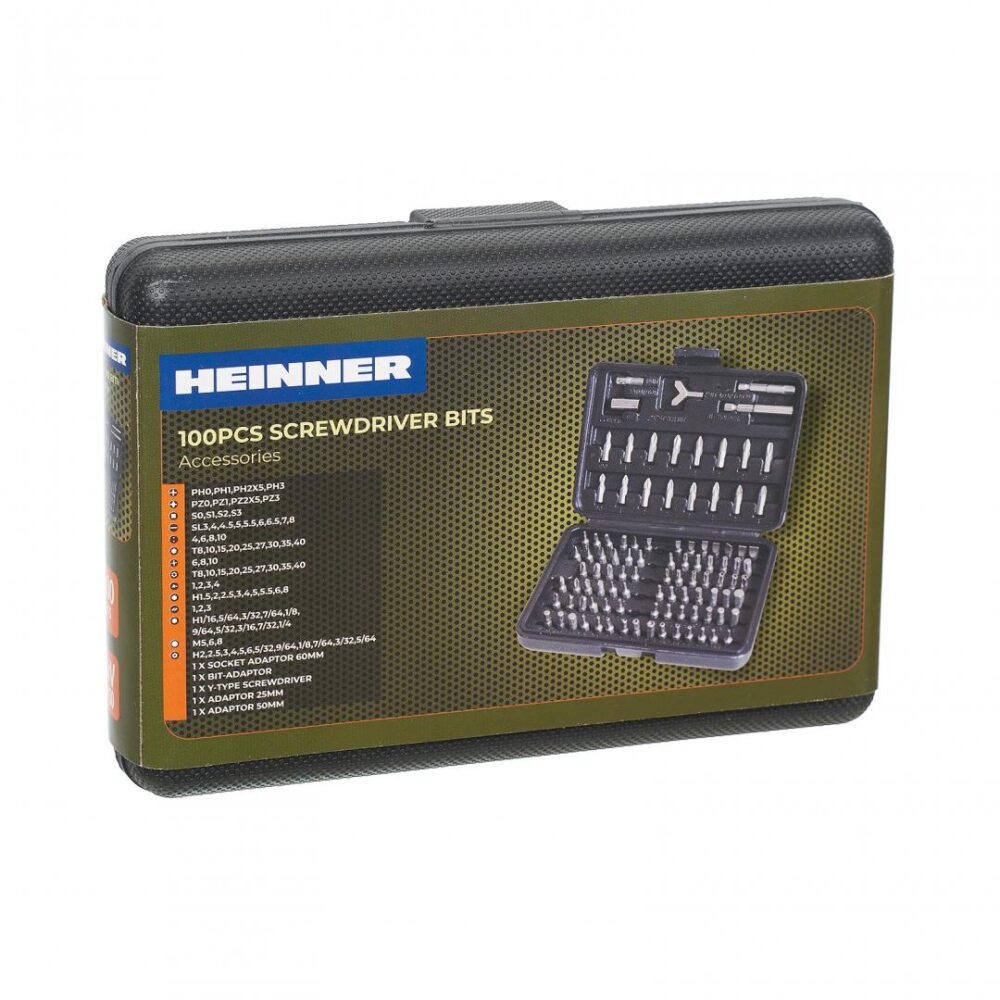 Descriere produs Set 100 biti si adaptor Heinner CTSM012, material chrome – vanadium