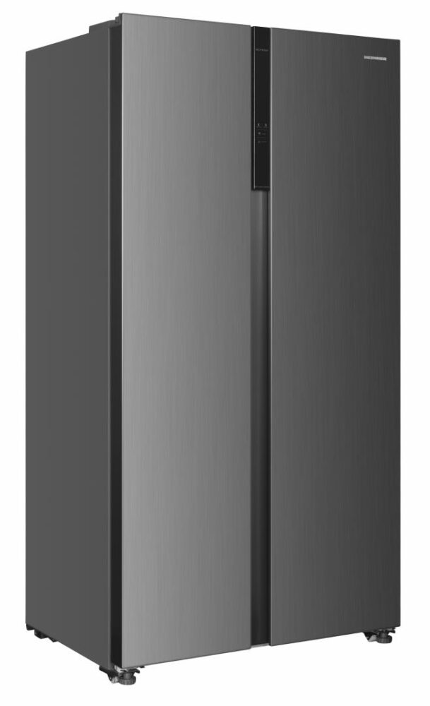 Descriere produs Side by side Heinner HSBS-HM532NFXE++, Full No Frost, Compresor Dual Inverter, clasa energetica E, display touch, control electronic, capacitate totala: 532L, capacitate frigider: 347L, capacitate congelator: 185L, functie SMART, functie ECO, Super racire, Super congelare, alarma usa deschisa