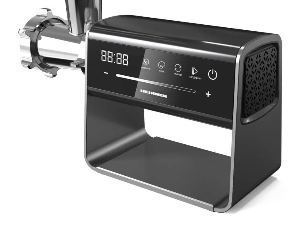 MASINA DE TOCAT HEINNER EXQUISITEFORCE HMG-DIS2500, 2500W, MOTOR DC, CONTROL TOUCH, ANGRENAJ PLANETAR (6 ROTI), ACCESORIU ROSII, KIBBE SI CARNATI, CAPACITATE TOCARE: 2.5KG/MIN, VITEZA VARIABILA, CUTIT SI SITE DIN INOX, FUNCTIE REVERSE, INOX