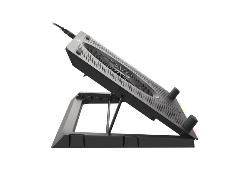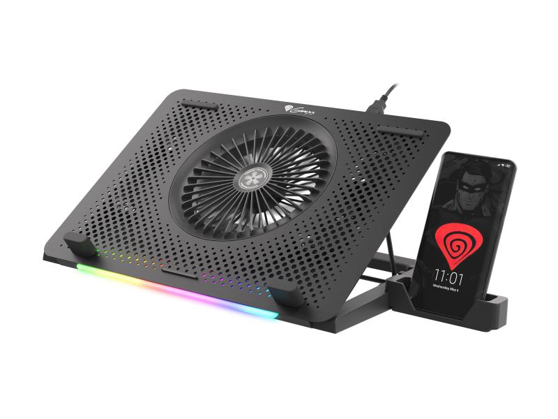 Stand/Cooler laptop Genesis Oxid 450 RGB , dimensiune maxima laptop 15.6quot;, 4 ventilatoare de 140 mm + 1 ventilator 140 mm, iluminare RGB, viteza de rotatie 2400 RPM cele de 60mm si 1100 RPM cel de 140mm, hub USB incorporat, dimensiuni 360 x 260 x 40 mm