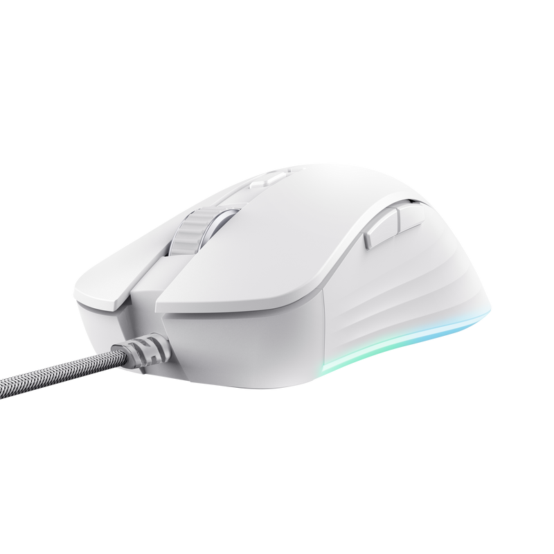 Mouse Trust GXT924W YBAR+ cu fir, USB-A 2.0, rezolutie maxima 25600 DPI, 6 butoane, iluminare RGB LED, pentru gaming de performanta, alb