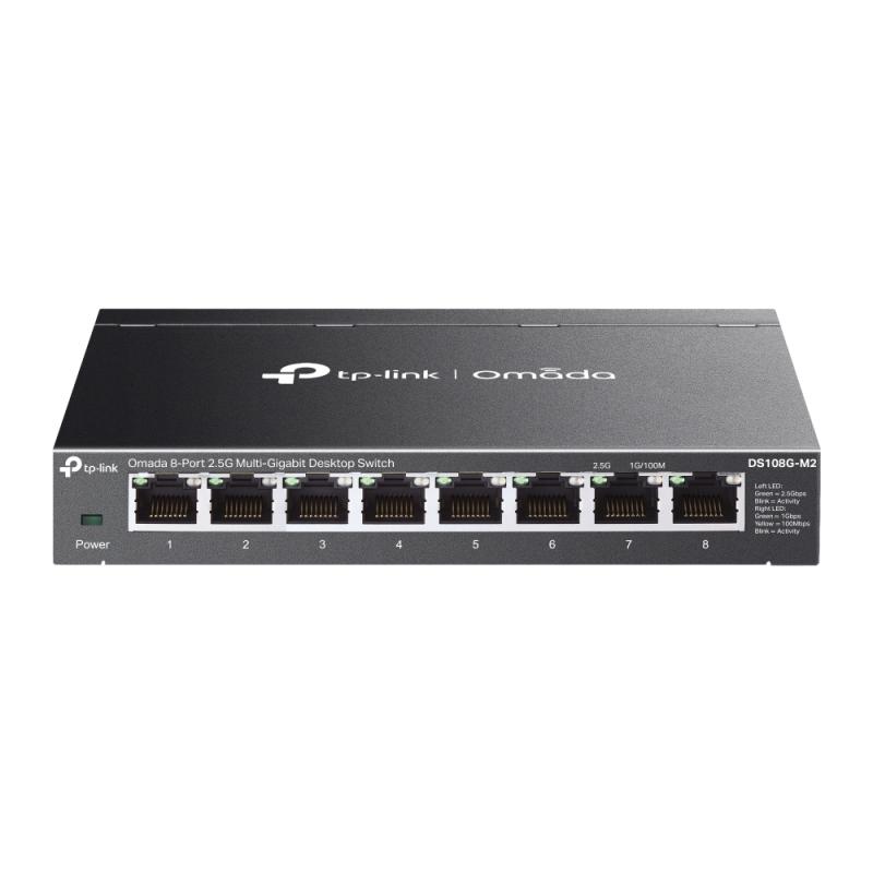 Switch TP-Link DS108G-M2, 8 x porturi RJ-45, viteza LAN 10/100/1000/2500 Mbps, standarde IEEE 802.3u, 802.3ab, 802.3x, 802.1p, 802.3bz, caracteristici speciale 802.3X Flow Control, 802.1p/DSCP QoS, IGMP Snooping, Store and Forward
